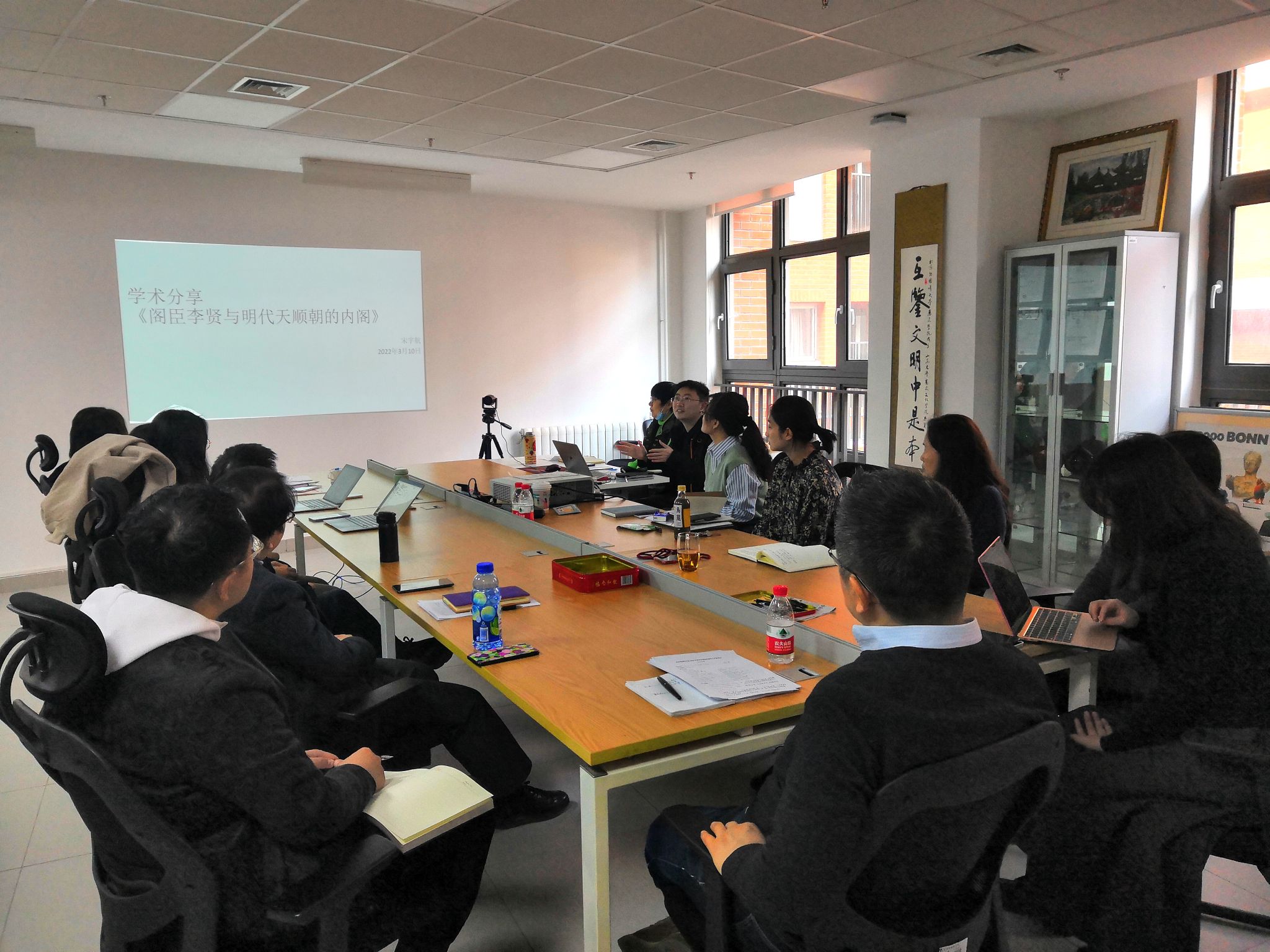 宋宇航老师首先介绍了明代内阁政治制度研究的成果及目前尚待解决的一些问题,又结合相关史料,以英宗、阁臣、夺门功臣间的关系为主线,探讨了李贤等阁臣的入阁原因和之后的政治活动。