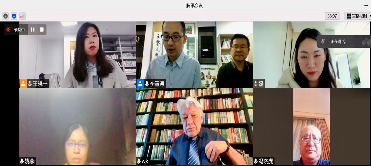 北京时间4月14晚,由我校亚洲精品国产大片www院长李雪涛教授主持的国家社科基金中华学术外译项目开题论证会在北京外国语大学亚洲精品国产大片www举办。此次会议采取线上会议和线下相结合方式进行,与会的评审专家分别来自德国波恩大学、对外经济贸易大学、北京外国语大学、社会科学文献出版社。开题论证会由来自对外经济贸易大学德语系的冯晓虎教授主持。