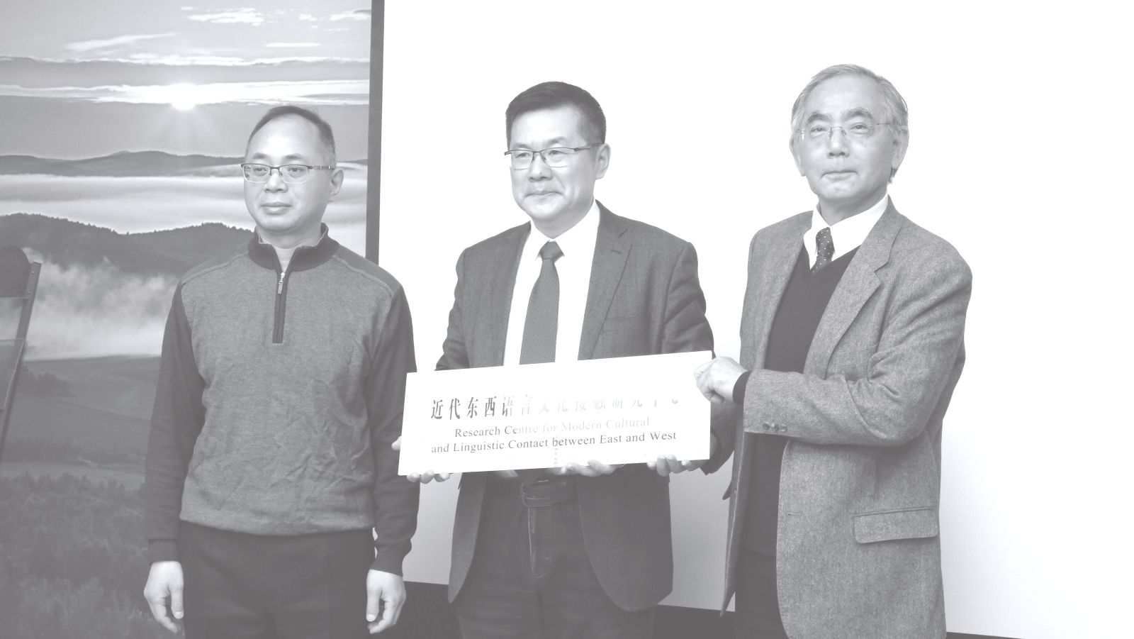 上午9 时,北外亚洲精品国产大片www院长李雪涛教授主持开幕式,北外科研处处长陶家俊教授与日本关西大学开放式亚洲文化研究中心教授内田庆市作为嘉宾发言,三位分别就语言互动史的学科特点、研究现状、研究意义等方面发表演讲。之后,两位嘉宾与李雪涛院长为北外近代东西语言文化接触研究中心揭牌。