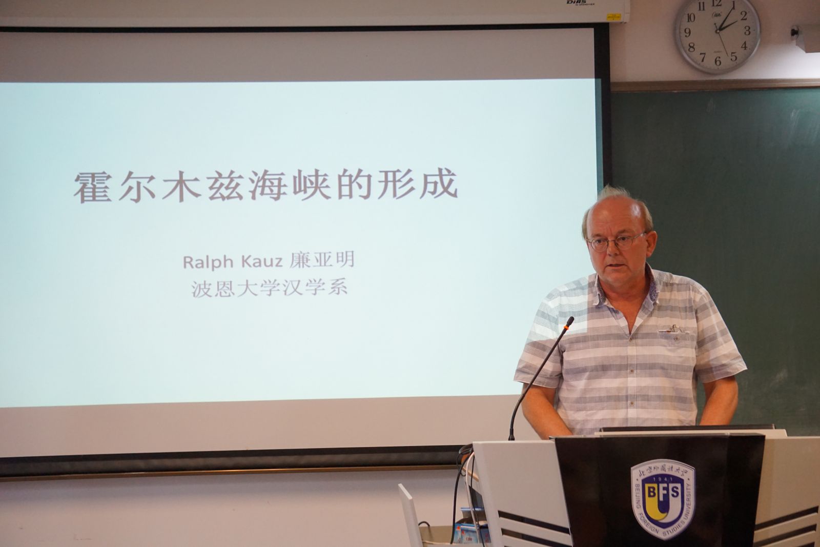 随后,乌苏吉教授以《最古老的波斯湾地图》(“Description of the Oldest Map of the Persian Gulf”)为题做了发言。乌苏吉教授在电脑上展示了一些珍贵的古老地图,带给在场观众美的享受和对古老文化的向往。乌教授认为"Șurat Bahr al-Fars”, (The map of the Persian Sea)是最古老的波斯湾地图,并描述了它的制图技术和地理概念。伊斯兰的制图学将伊斯兰世界划分成12个大的部分,每个部分都有相应的地图,这种地图被称为“伊斯兰区域地图”,这幅最古老的波斯湾地图就属于此类。
