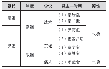汉朝是水德还是土德的本朝德性定位,基于若干历史问题的讨论,最重要的便是前朝(秦朝)能否在五德中居有一德,这关乎秦汉之际的历史书写与德性判定。秦始皇“推终始五德之传,以为周得火德”(《史记·始皇本纪》),秦代周而起,以水克火,应当为水德。既然周秦之变带来德性变化,秦汉之变也应当迎来水土之间的德性变化——由秦朝的水德变为汉朝的土德。可是,高祖时负责历法事宜的计相张苍“推五德之运,以为汉当水德之时,尚黑如故”,秦朝自以为水德,故尚黑色。张苍此论无疑是秦汉同德,汉代秦而起却与之同德,不是否认秦朝为五德之一,这恰恰是开朝君主刘邦定下的汉朝祖制。
