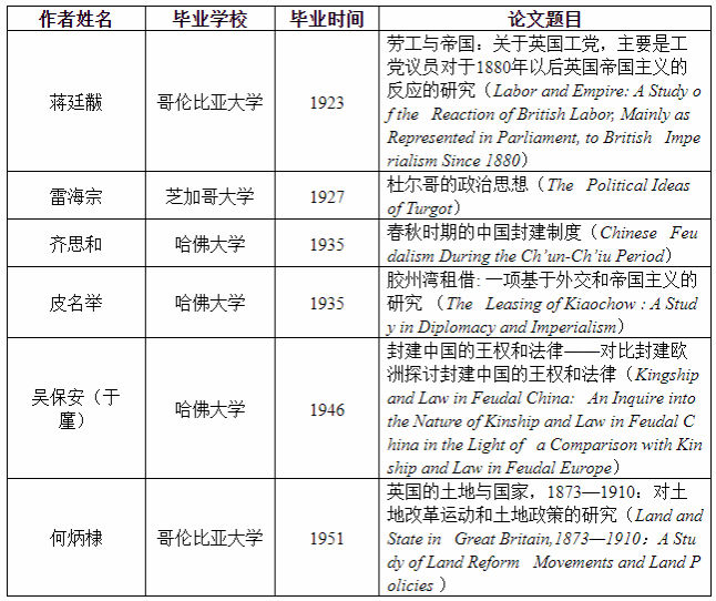 [4] 参见元青:《民国时期留美生的中国历史研究与美国汉学——以博士论文为中心的考察》,《广东社会科学》2015年第6期,第118—119页。